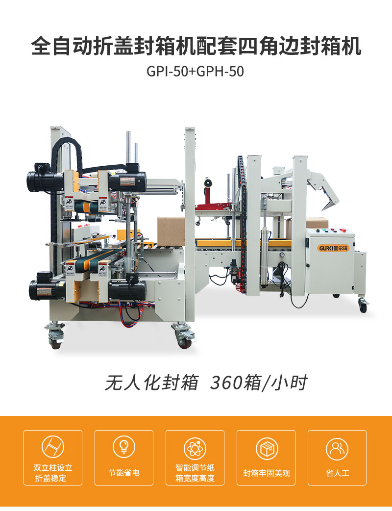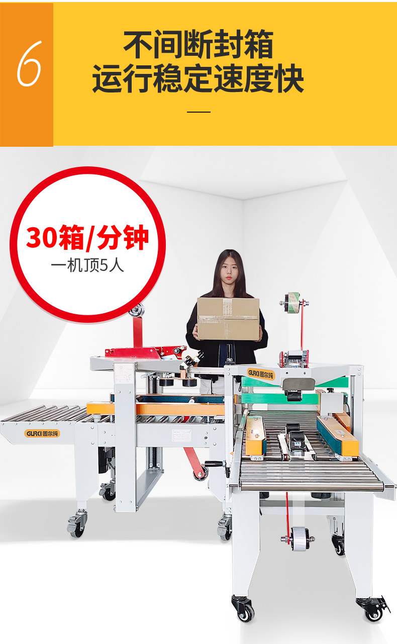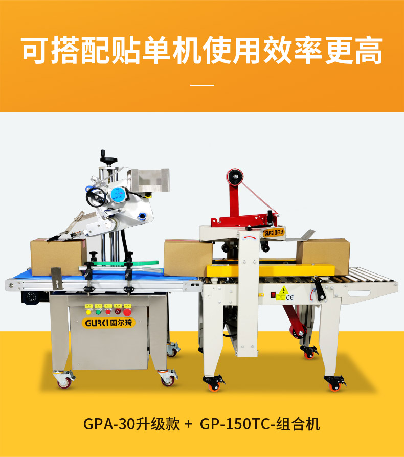 电商封箱机配套快递贴面单机,封箱贴面单效率日发8000+。具备一键式傻瓜操作,自动化封箱贴面单一步完成,保养简单,稳定性强的特点