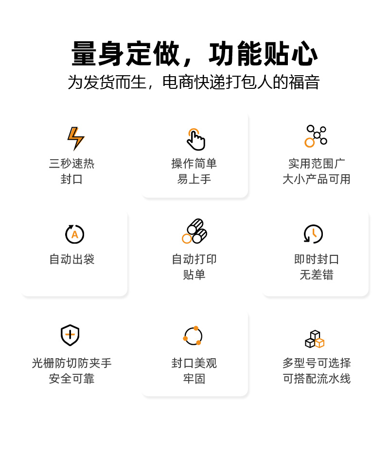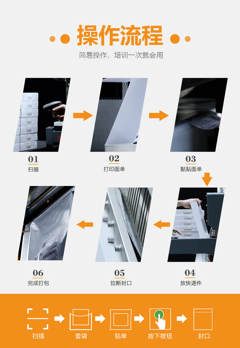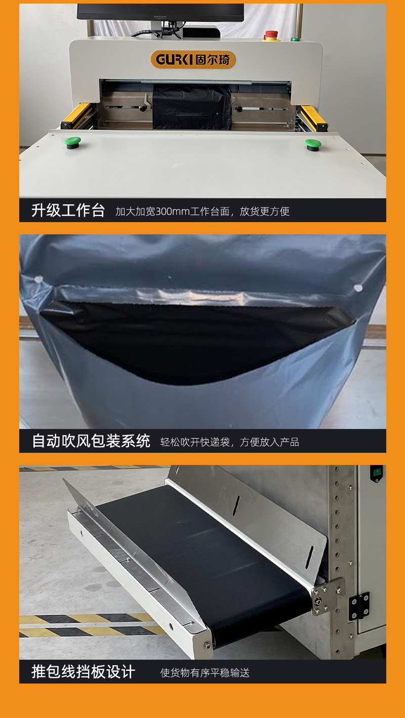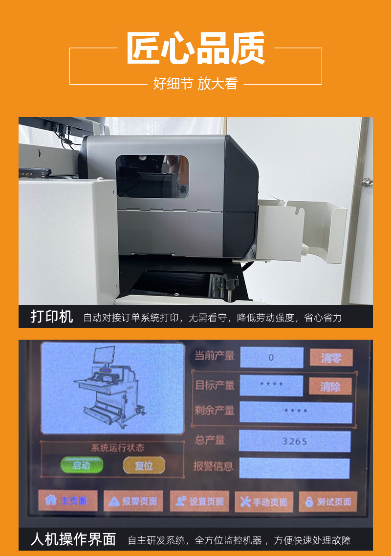 电商封箱机配套快递贴面单机,封箱贴面单效率日发8000+。具备一键式傻瓜操作,自动化封箱贴面单一步完成,保养简单,稳定性强的特点