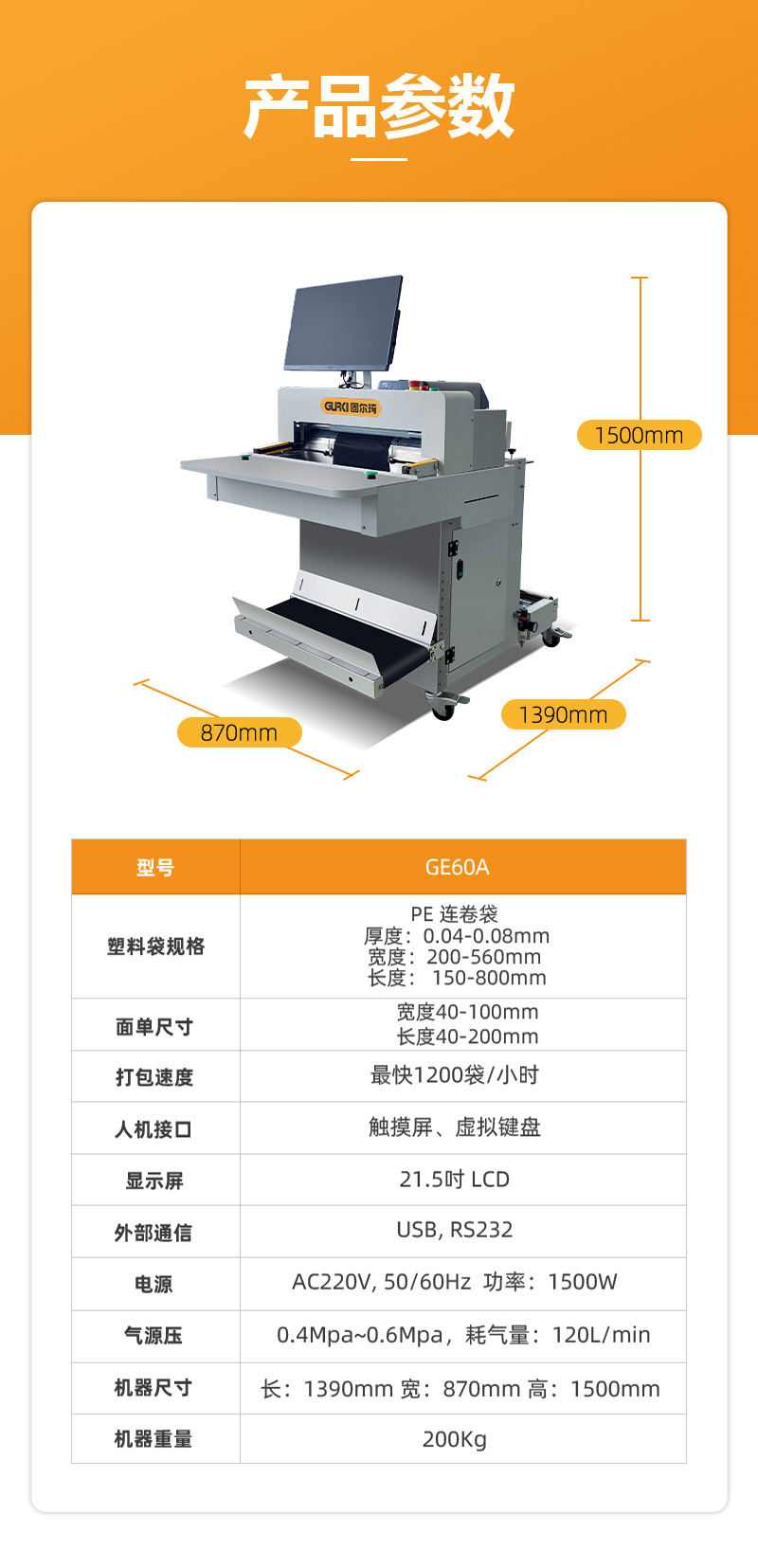 长:1390mm 宽:870mm 高:1500mm |