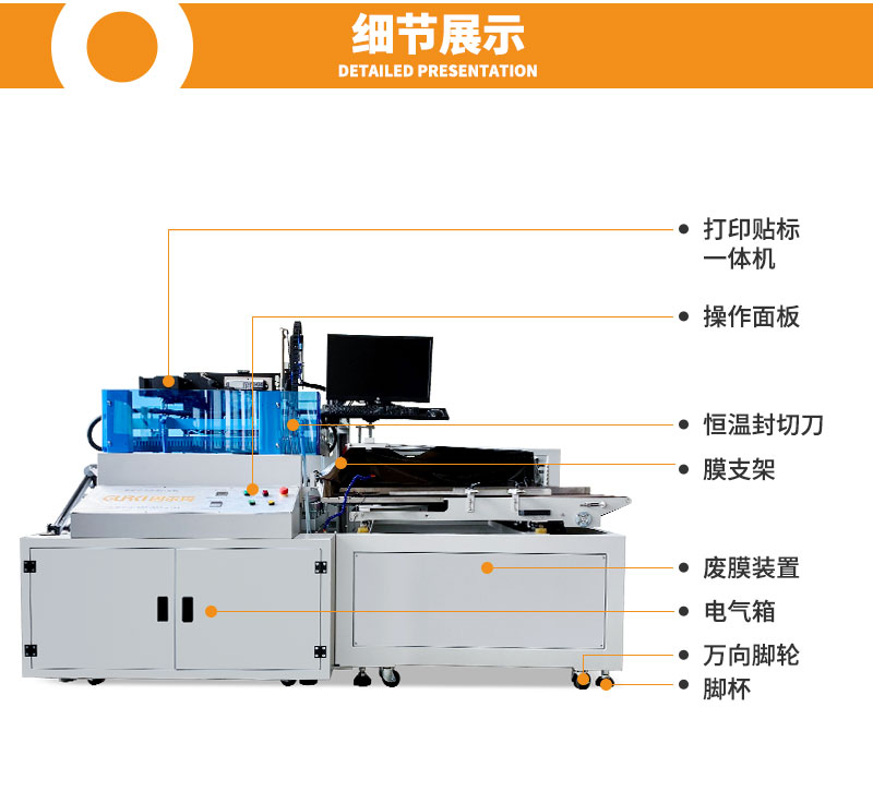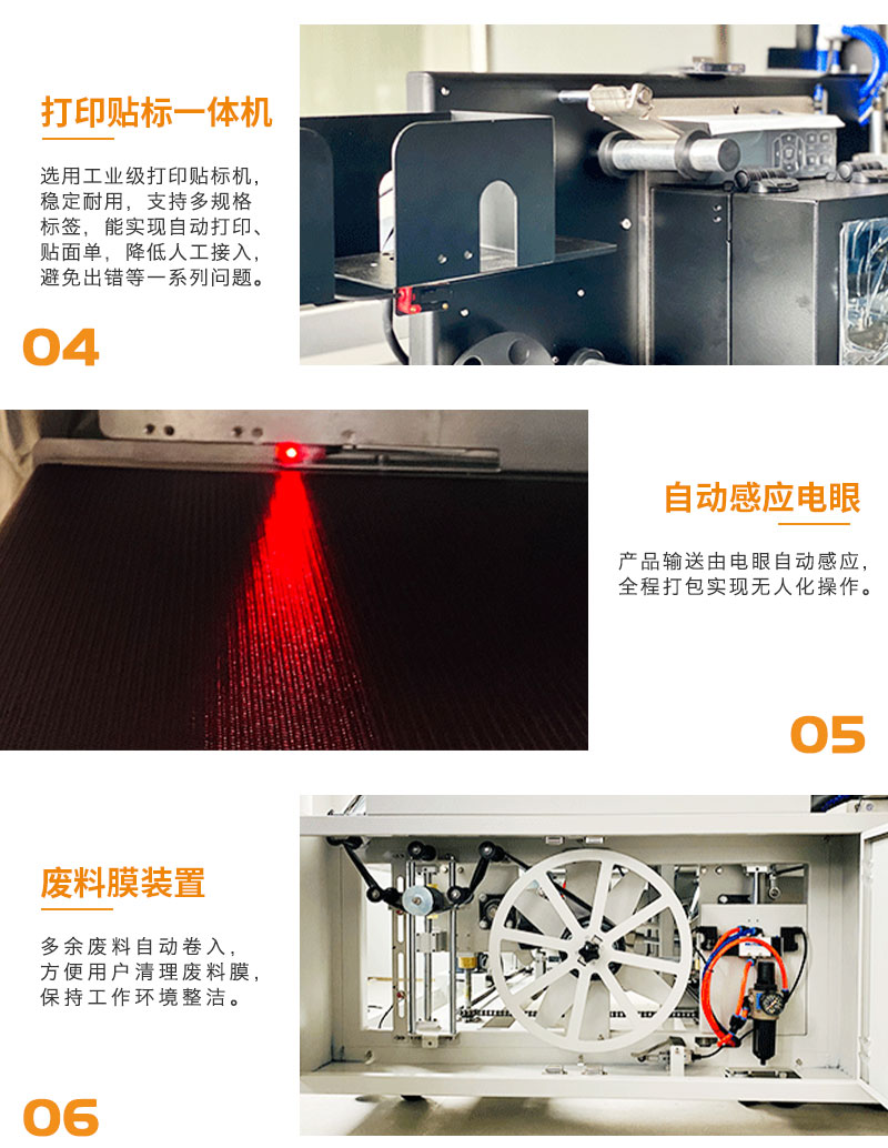 电商封箱机配套快递贴面单机,封箱贴面单效率日发8000+。具备一键式傻瓜操作,自动化封箱贴面单一步完成,保养简单,稳定性强的特点