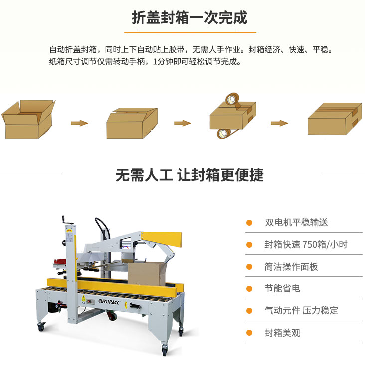 [化妆品行业] 电商封箱机,自动快递贴面单机,这个两用型的打包机,效率高!