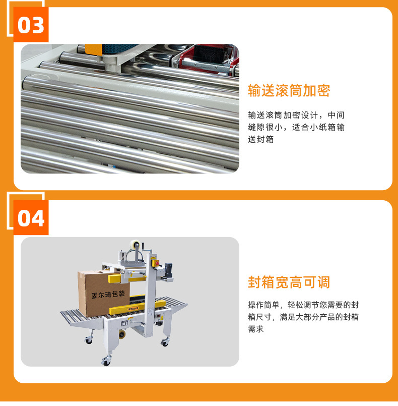 [化妆品行业] 电商封箱机,自动快递贴面单机,这个两用型的打包机,效率高!