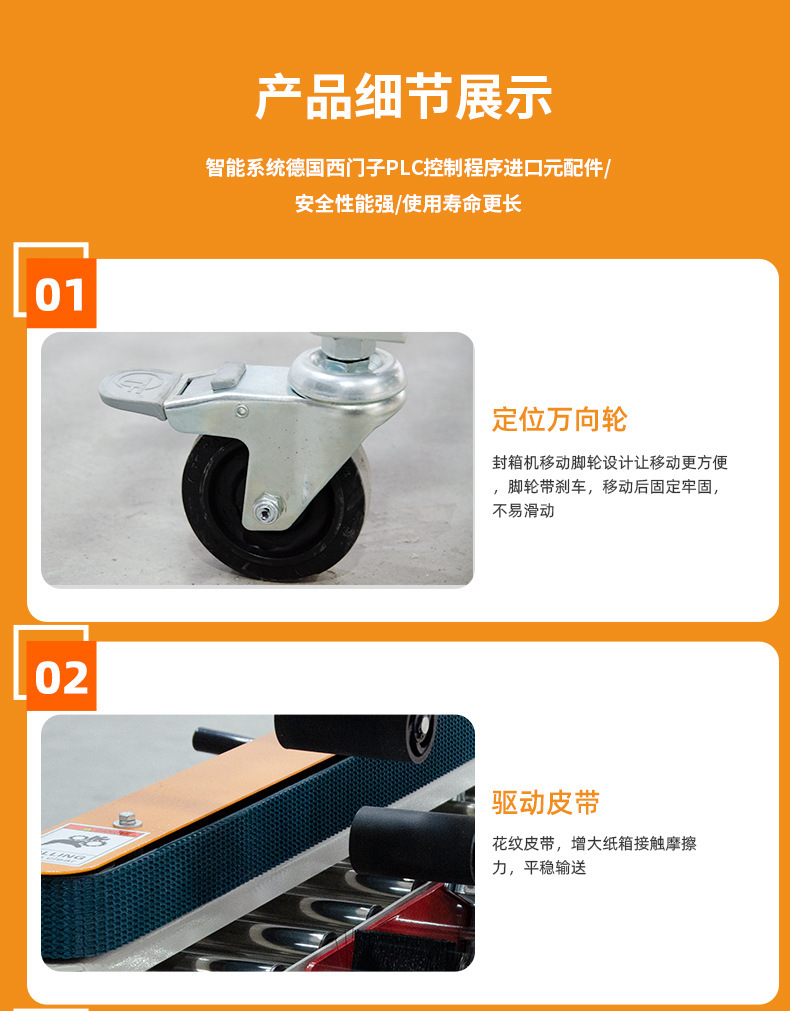 电商封箱机配套快递贴面单机,封箱贴面单效率日发8000+。具备一键式傻瓜操作,自动化封箱贴面单一步完成,保养简单,稳定性强的特点