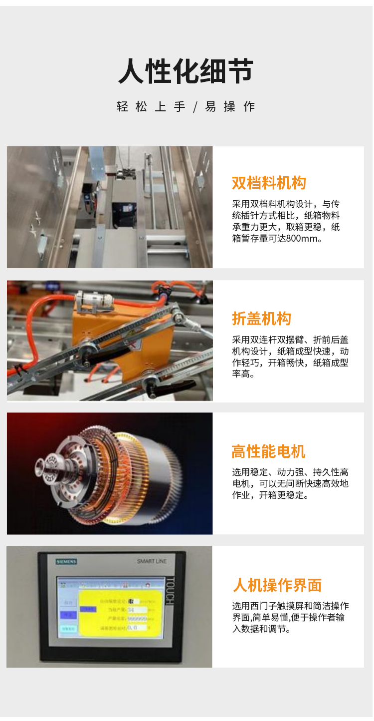 电商封箱机配套快递贴面单机,封箱贴面单效率日发8000+。具备一键式傻瓜操作,自动化封箱贴面单一步完成,保养简单,稳定性强的特点