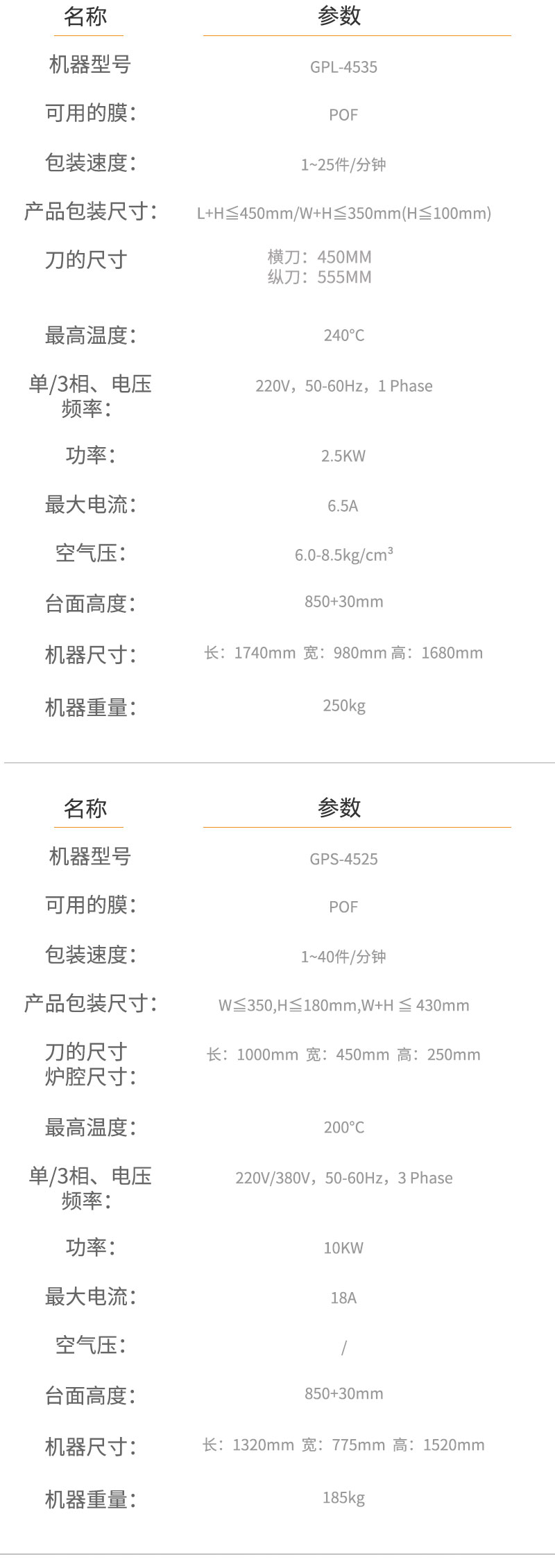 | 型号 | GPL-4535I | GPS-4525L |