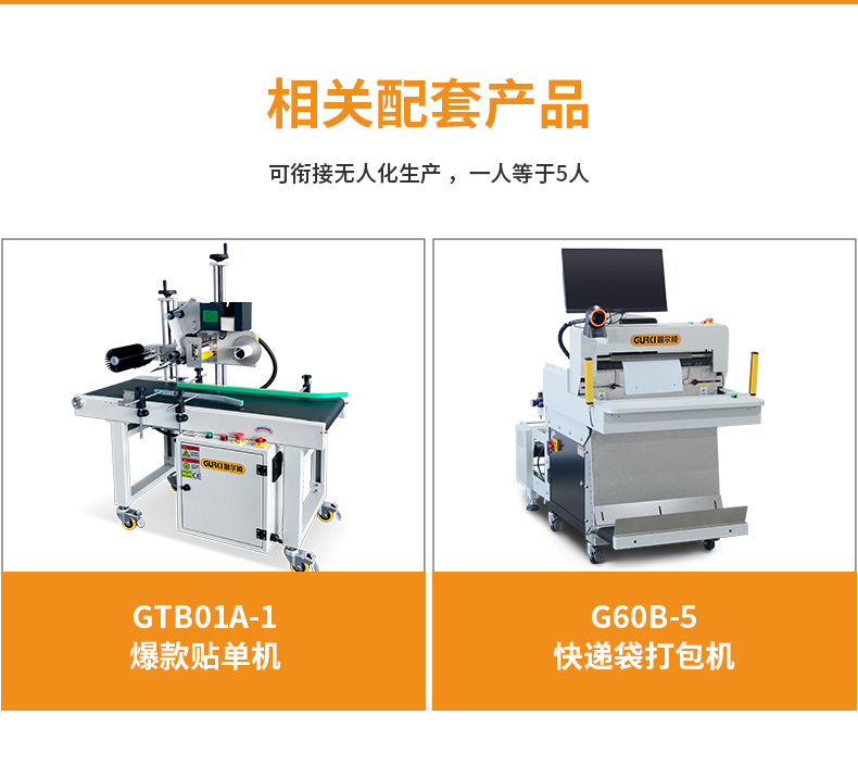 电商封箱机配套快递贴面单机,封箱贴面单效率日发8000+。具备一键式傻瓜操作,自动化封箱贴面单一步完成,保养简单,稳定性强的特点