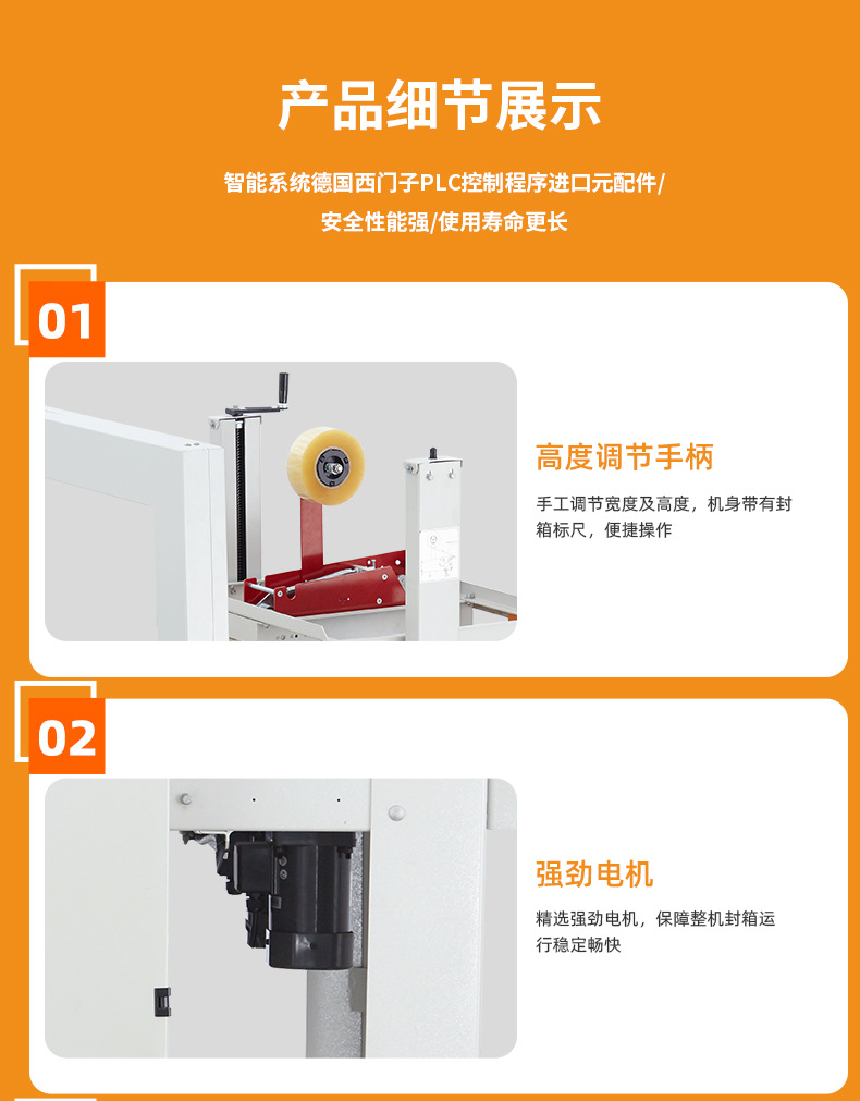 电商封箱机配套快递贴面单机,封箱贴面单效率日发8000+。具备一键式傻瓜操作,自动化封箱贴面单一步完成,保养简单,稳定性强的特点
