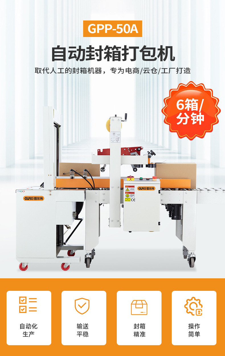 [化妆品行业] 电商封箱机,自动快递贴面单机,这个两用型的打包机,效率高!