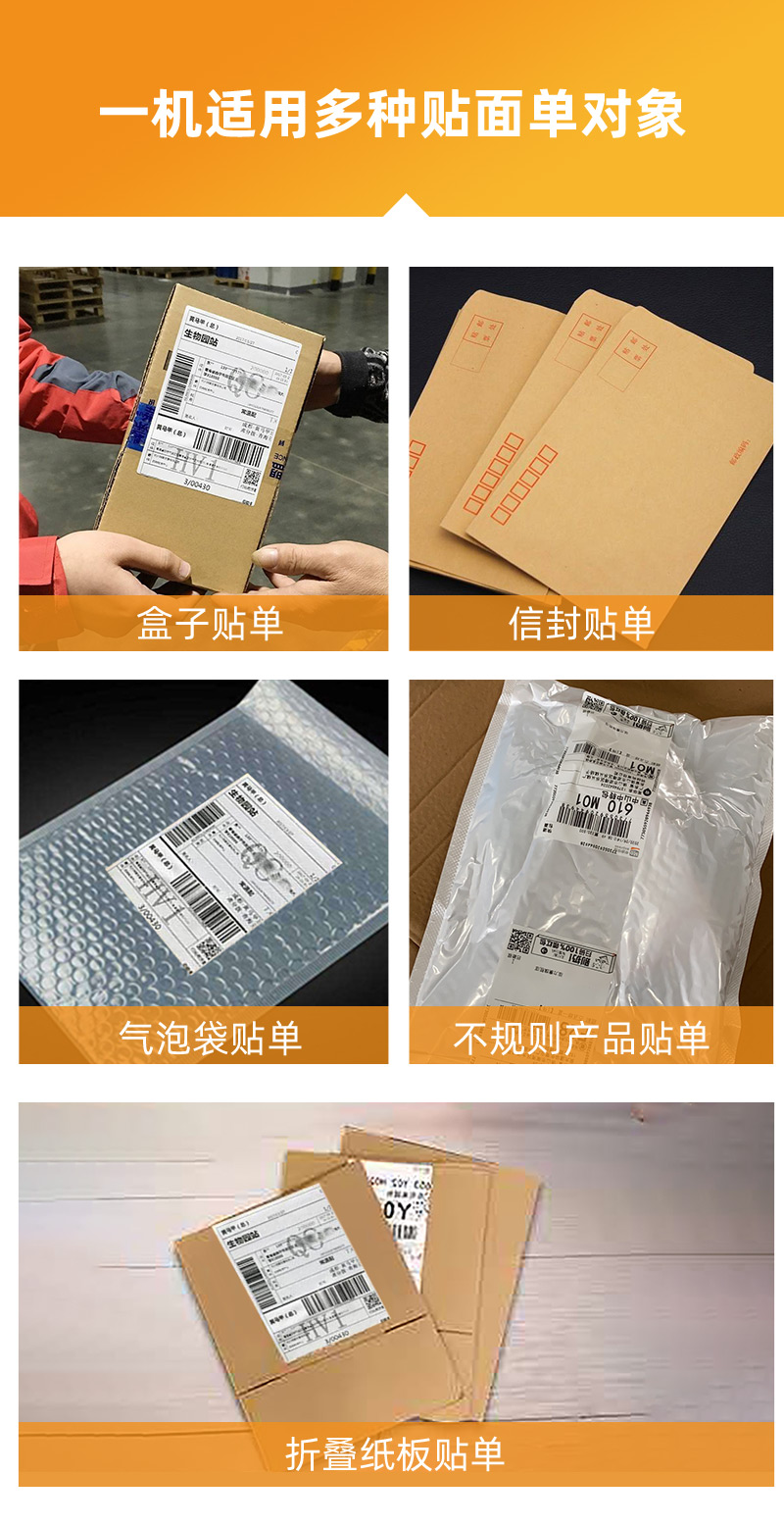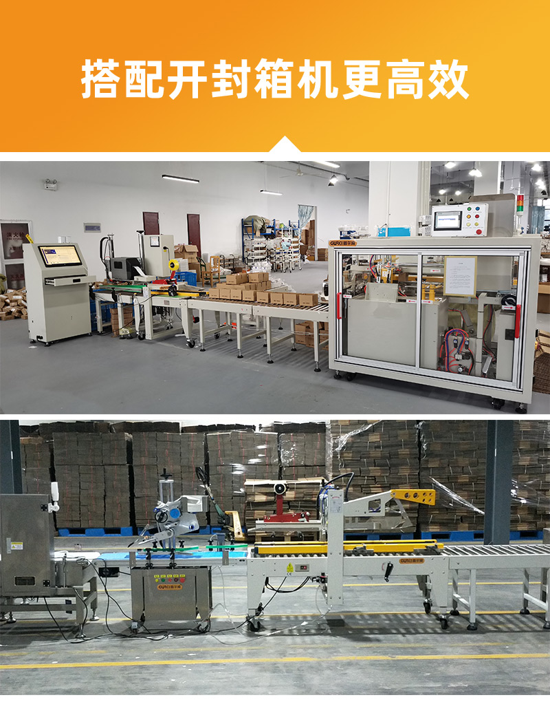 电商封箱机配套快递贴面单机,封箱贴面单效率日发8000+。具备一键式傻瓜操作,自动化封箱贴面单一步完成,保养简单,稳定性强的特点