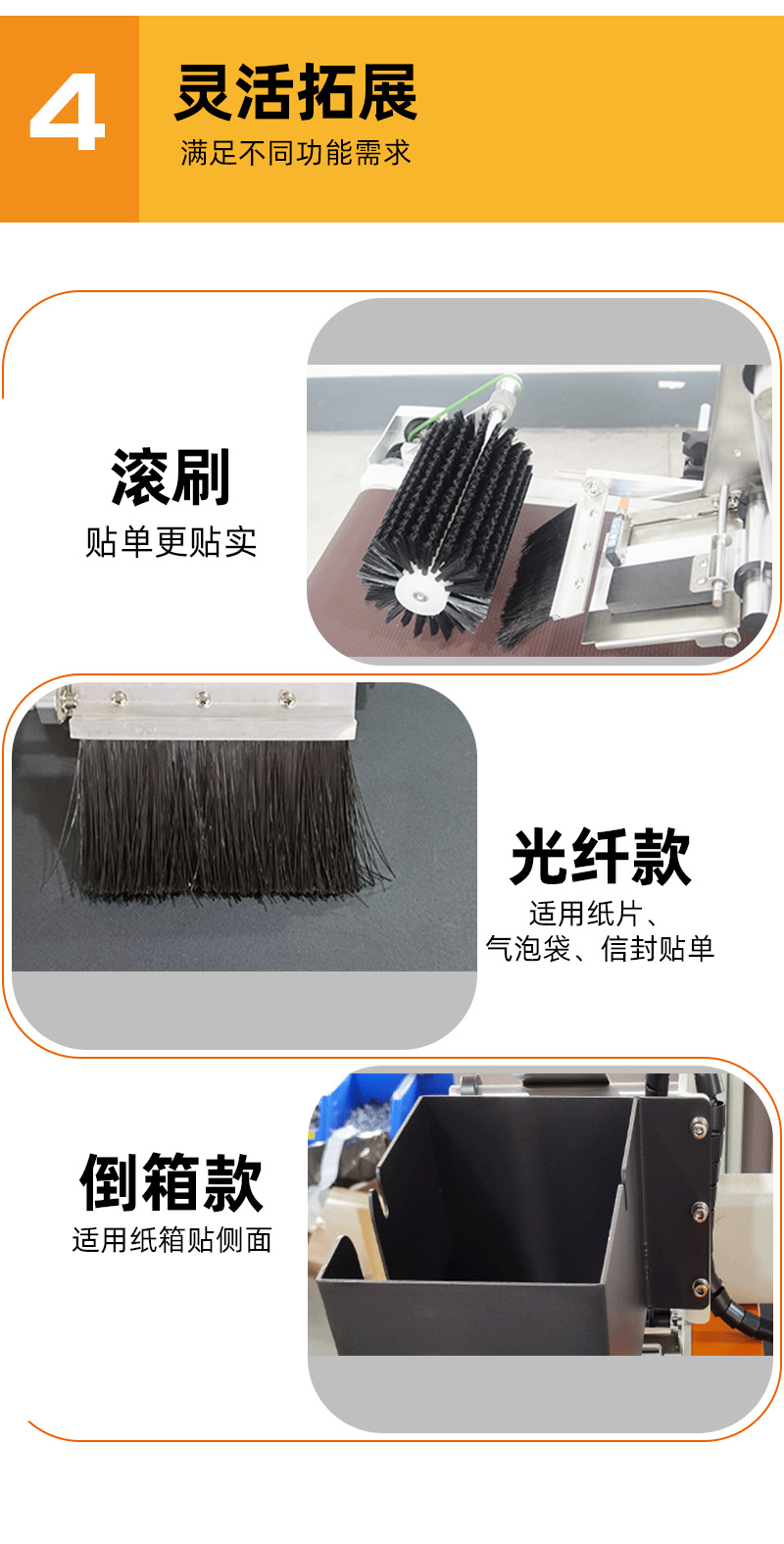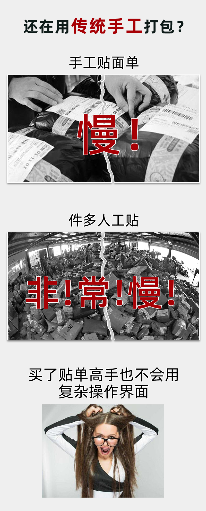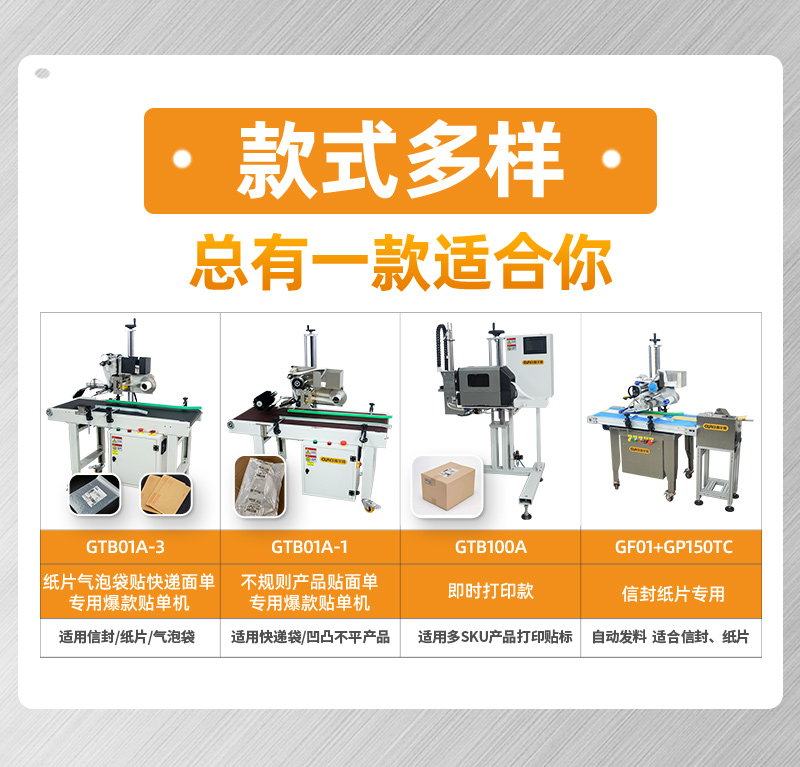 自动快递贴单机是我司自主设计生产的一款24小时无人化连续贴单作业的设备,该机具有一键启动,傻瓜式操作的特点,日贴3万+,操作使用体验更好。同时,该机针对信封等较薄的证件贴面单,设有光纤传感器,方便更加快速贴单,适用于贴各种规格的大小纸箱、快递面袋等,可实现打印快递面单后,产品一边输送一边贴单,贴单平实、贴单位置精准,不倾斜,精度误差≤±1mm。可单机使用也可配套封箱机使用,广泛应用于仓储、物流、电商等行业。